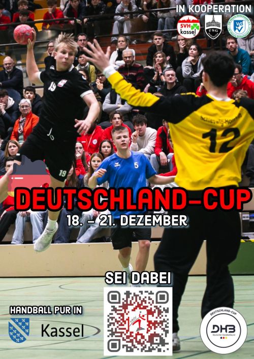 zum zweiten Mal in Folge ist der HHV Ausrichter des wichtigsten Auswahlturniers Deutschlands. In weniger als 75 Tagen startet in Kassel der Deutschland-Cup 2025. Ein Highlight für alle Handballinteressierten. Vier Tage, vier Hallen, über 40 Spiele und an die 250 Nachwuchstalente, welche sich auf höchstem Niveau messen werden. Bereits vergangenes Jahr durften wir an allen Tagen insgesamt knapp 3.000 Zuschauer willkommen heißen und möchten den Teams auch dieses Jahr wieder zeigen, wie gut die Stimmung in Hessen ist.